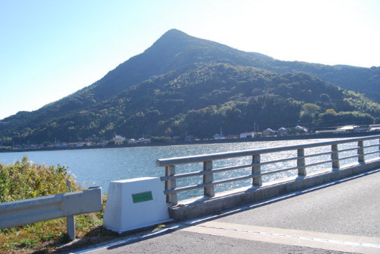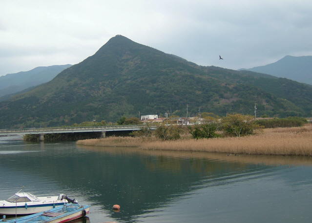 肝属川河口の第二有明橋から眺めた権現山 |