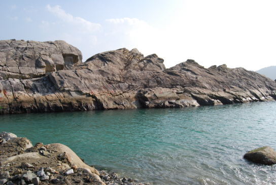 海岸線の一角に天然の美しい船間漁港がある。 |