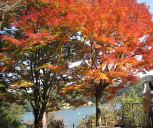 左岸の紅葉風景と冬鳥のカモの群れ 2010/11/18 |