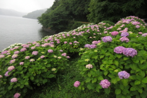 | 大隅湖はシラス土壌におおわれた笠野原台地(6300ha)のかんがい用貯水池として、串良川上流につくられた周囲約10Kmのダム湖である。ダムは高さ47m、長さ136m、満水面積104ha,総貯水量1393万立法メートル。ダムの完成には紆余曲折があり、昭和42年3月に完成した。春は桜、初夏はアジサイ、秋は紅葉、冬は渡り鳥の越冬地として知られ、訪れる人々を楽しませてくれる。遊覧ボートもあり、湖上から望む自然の景観もまた格別である。北側湖岸ではブラックバス釣りも楽しめる。湖畔では、「レイクサイドフェスティバル」が開催され、たくさんの人出で賑わう。大隅湖北寄り湖畔のほとりには、風光明媚な大隅湖と地の利を生かしてつくられた鹿児島県アジア・太平洋農村研修センターと鹿屋市アジア・太平洋農村研修村民族館があり国際色豊かな風情を醸しだしている。最終更新日 2020/01/05 |
