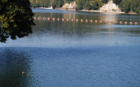 | 上左写真は2009年のボート場付近の様子であるがここ一帯も完全に干し上がっていた。今年は湖面いっぱいに水をたたえ、渇水の心配はなさそうだ。 |