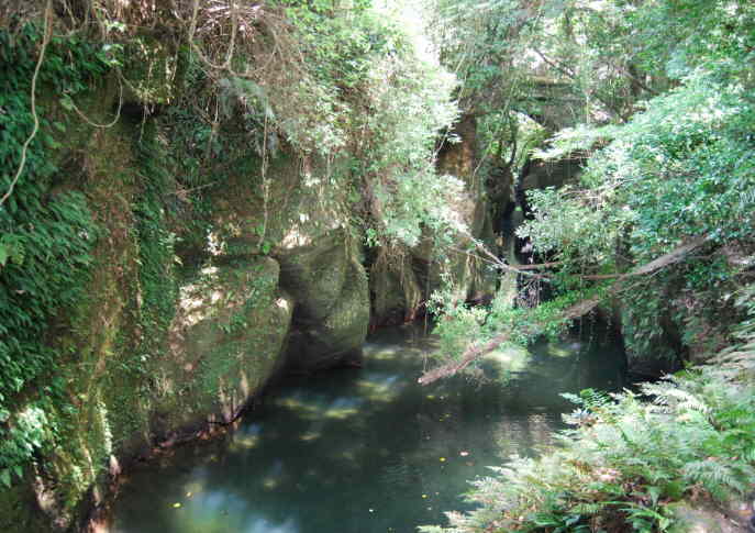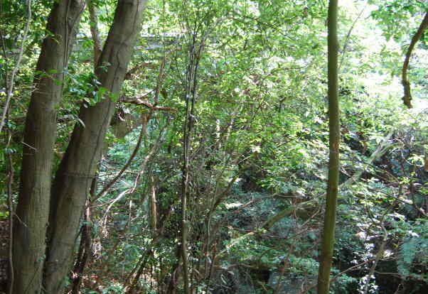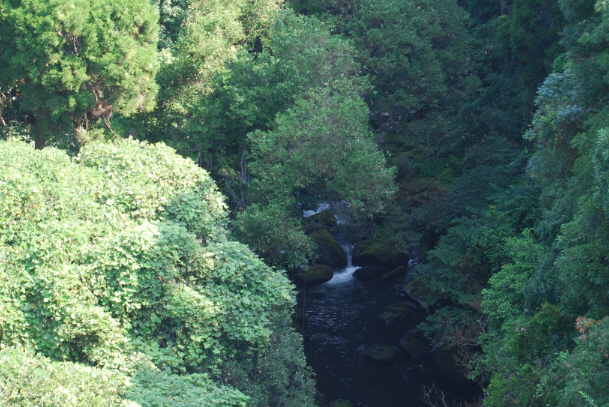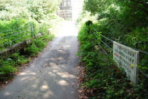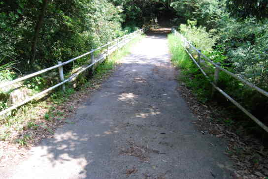 磯吉橋全景 橋の周辺は草木が生い茂り、橋の全景をとらえる事ができない。 |