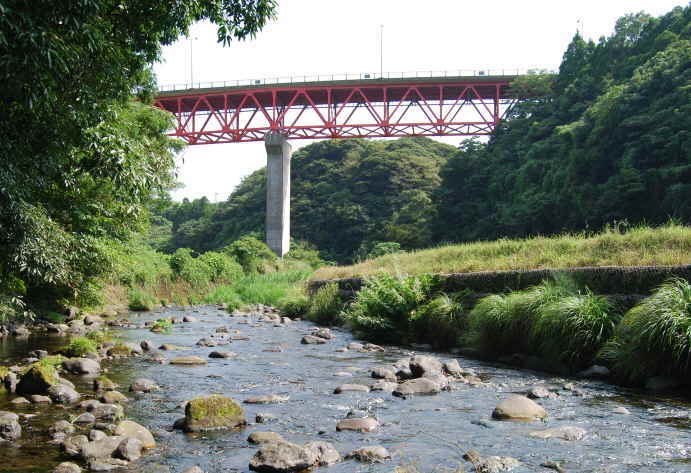 | 一里山橋は国道220号線鹿屋バイパスに架かり、平成4年3月に完成した橋で長さが188mある。一里山橋の由来は 江戸時代中期、花岡島津家の居城鶴羽城(現鶴羽小学校)から鹿屋方面への一里塚が建立されていたことから通称この地は「一里山」と呼ばれており「一里山橋」と名付けられた。 |
