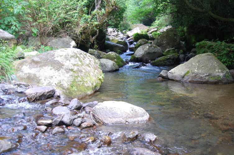 更に上流源流点を目指す。高須川源流点近くの白滝 |