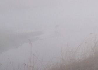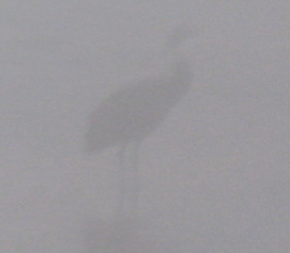 | 夜明け前の午前6時20分、朝もやのかかる中州下流域の水中にナベツルの姿が浮かび上がった。 |