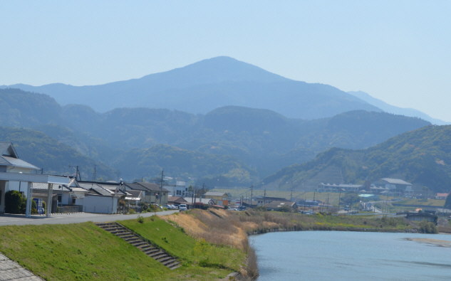 根占冨士とも呼ばれる美しい三角錐の山容の辻岳。雄川橋からの眺望 2014.03.24