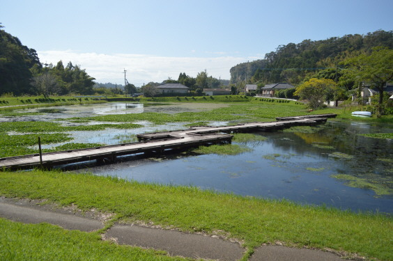 | 中山池公園は、鹿屋市郊外の串良町上小原の国道220号線に架かる中山橋上流方向にある。中山池を取り囲むように遊歩道とボードウォークをめぐらし、親水公園として整備され、環境省の鹿児島県の代表的な湧水にも指定され、野鳥やトンボなど自然観察の場にもってこいの公園である。広さ1.74haの公園には東屋が二棟建ち、駐車場・トイレが完備。公園一角には、市文化財指定の