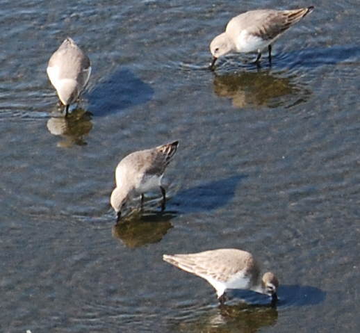 | 採餌風景。嘴(くちばし)を泥の中に刺しこんで餌を捕るハマシギ。 |