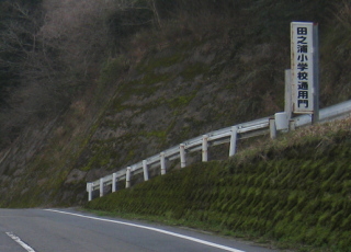 | ↑田之浦の山宮神社入り口をすぎて300m。右手に見える田之浦小学校通用門から入る |
