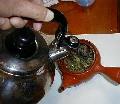 葉をやかんに入れて煮出す。
