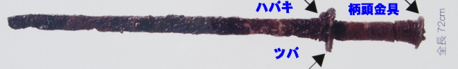 | 中尾地下式横穴墓群から出土した象嵌装大刀 |
