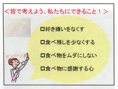 ○学んだことを生かして、食の安全を考え、生活の場で生かそう。