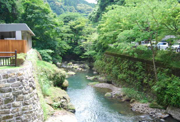 塩浸温泉一帯の風景(塩浸温泉橋から上流方向を望む) |