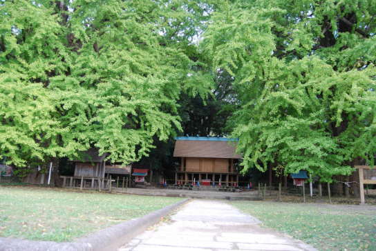 向かって右の木は、樹高約38m、樹周約7.55mの大きさで寛政3年(1791)の大火による傷痕がある。