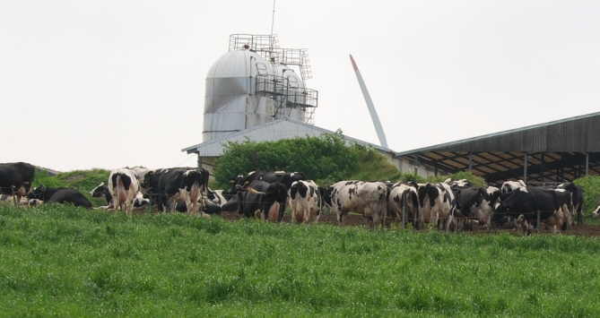 まわりには牧場が広がり、乳牛が草を食むのどかな風景が広がる。 |