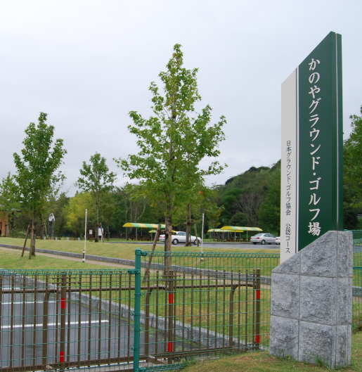 | かのやグラウンド・ゴルフ場は、かつて田崎町の集落があった場所で鹿屋航空基地騒音対策により集落全体が移転し、その跡地にゴルフ場がつくられた。かのやグラウンド・ゴルフ場の面積は8.3ha、すべて天然芝の8コース64ホール(最大12コース96ホール)の日本一の本格的な専用グラウンド・ゴルフ場だ。日本グランド・ゴルフ協会認定コースで全国規模の大会も開催される。2008年10月26日・27日、ねんりんピック鹿児島2008のグラウンドゴルフはここで開催された。 |