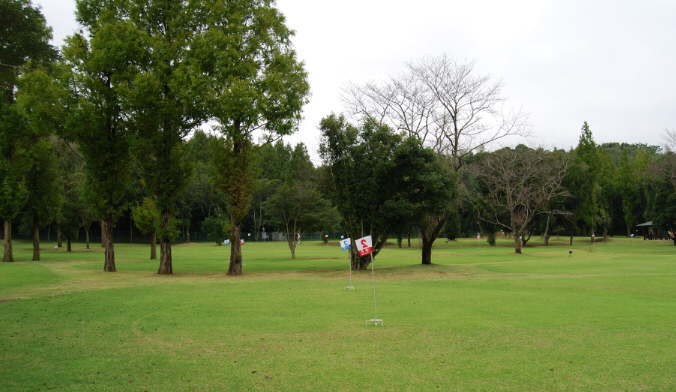 自然の樹木に囲まれた全面天然芝生のゴルフ場 |