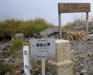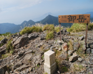| テレビ塔下登山口からテレビ塔まで約1時間、テレビ塔下でしばらく休憩して御岳頂上を目指す。山頂まで約2時間。途中、何カ所か急登な場所や粘土質のぬかるみに出合い、ロープや鎖を伝って登る。八合目付近の水飲み場で喉を潤す。山頂からは360度の大パノラマを展望。 |