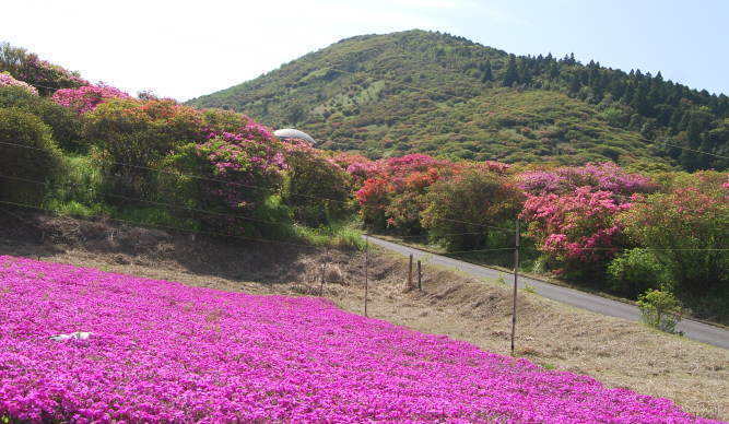 | 高峠つつじヶ丘公園は大隅半島のほぼ中央、垂水市の北東に位置する。この峠一体は、100種類,10万本以上のサタツツジが自生し、満開時は峠をピンク一色に染める。春のつつじ開花の時期に合わせ「高峠・春のツツジ祭り」が開催され、園内ウォークラリーや特産品が当たるスタンプラリー、青空市などが計画されている。県立自然公園・県民自然レクレーション村にも指定され,ハイキングコース、家族広場,遊歩道,アスレチック等のレクリエーション施設が整備されている。標高722mの山頂には展望所があり、南に高隈連山,北に桜島・霧島連山,西に錦江湾,東に志布志湾の大パノラマを楽しめる。公園面積は38.5ha。入場料無料。 |
