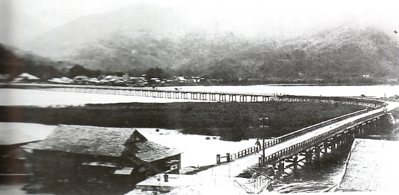 肝属川最下流に架かる第二有明橋と第一有明橋、昭和3年の映像である。東串良町柏原と高山波見を結ぶ橋で中島を中継地にして第二有明橋と第一有明橋で合わせて400mを超える南九州一の長さを誇る木橋であった。
