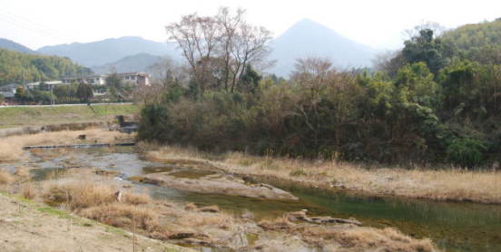 神野のシンボル吾平富士(中岳)と姶良川の清流 |