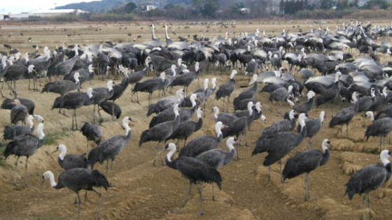 ナベヅルとマナヅル。ナベヅルの方が数が多いようだ。