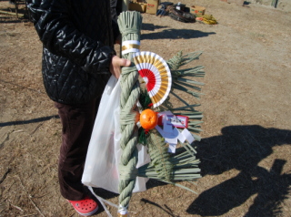 | 飾りや竹笹は魔除けに、孟宗竹は花立てや貯金箱にする習わしがあり、大切に持ち帰られる。 |