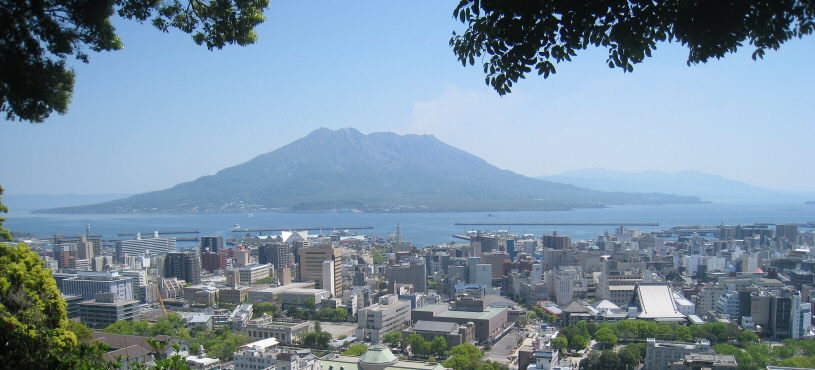 山頂広場展望所から市内と桜島の眺望。久しぶりの城山探訪だったが展望所から眺望する鹿児島のシンボル桜島の雄姿は昔も今も変わらなかった。