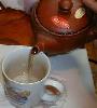 きゅうすにほうじたケナフ葉を入れ
