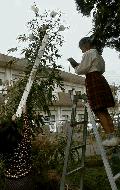 種を一粒一粒手に持ち、種の観察からスタートした。場所と人数の関係で一人一本の苗を移植して裏校庭のフェンスに沿って植えた。町の学校で日頃子供たちは土にふれる機会が少ないので、除草などケナフの世話が出来るか心配していたがそれも取り越し苦労だった。子供たちは積極的にケナフの観察活動や除草などの世話活動に取り組んだ。