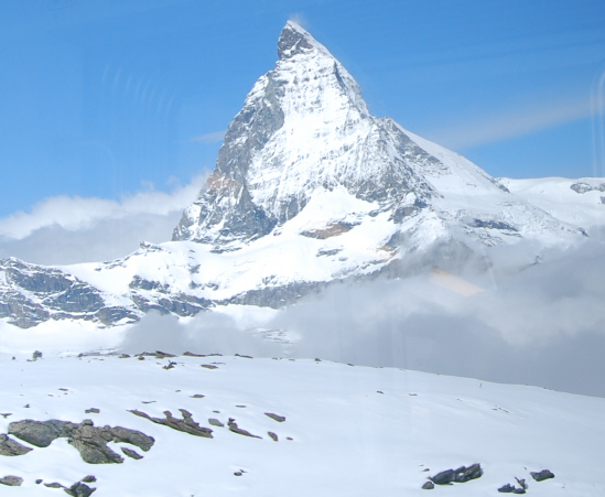 山頂が尖ったピラミッド型のマッターホルンの山容は「スイスアルプスの女王」と称せたれるほど端正で気品に満ちた山だった。 |