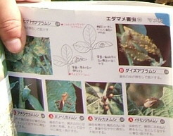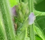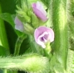 種まきから50日目、花が咲き始めたよ。くきの途中にうす紫色の小さなかわいい花を発見しました。かめ虫を発見しました。 |
