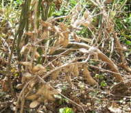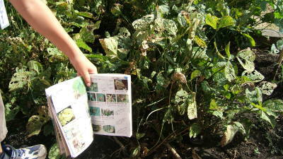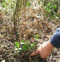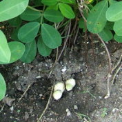 2学期がスタートしました。大豆は葉を青々としげらせ、実をつけ始めました。落花生は地下に実ができていました。 |