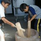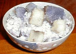 | 上川沿小よりいただいた「秋田こまち」と自分達で育て収穫したいもを使ってからいもごはんを作る。 |