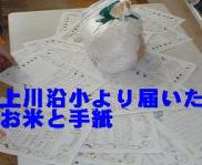 ○上川沿小より送っていただいた「秋田こまち」と自分達で育てた米を紹介しあって交流学習へ発展させることができた。