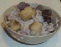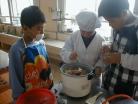 | 12月6日 送っていただいた「秋田こまち」と自分達で収穫したさつまいもを使って郷土料理「からいもめし」をつくる。 |
