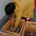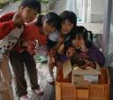 | 収穫したいもを一個ずつ水あらいし、はこづめにして送りました。 |