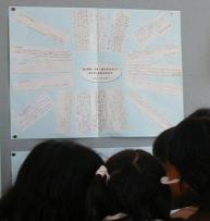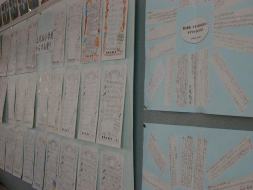 | 教室後ろの壁に貼られた手紙とよせ書き |