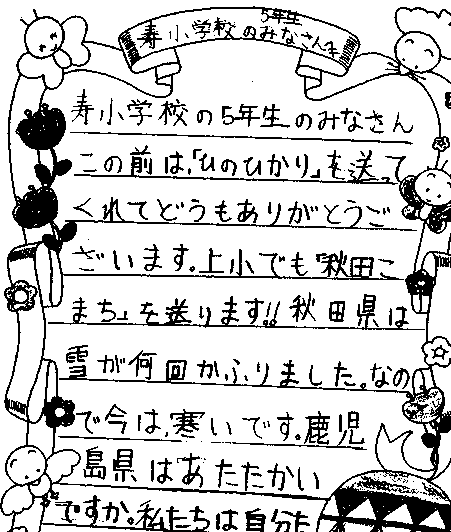| 10月17日、秋田県の上川沿小学校5年生より次のような手紙が届く。 |