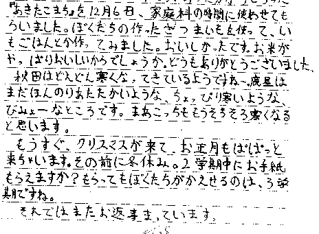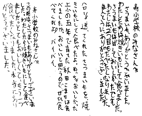 | 11月28日、さつまいもお礼の手紙と寄せ書きが届く。 |